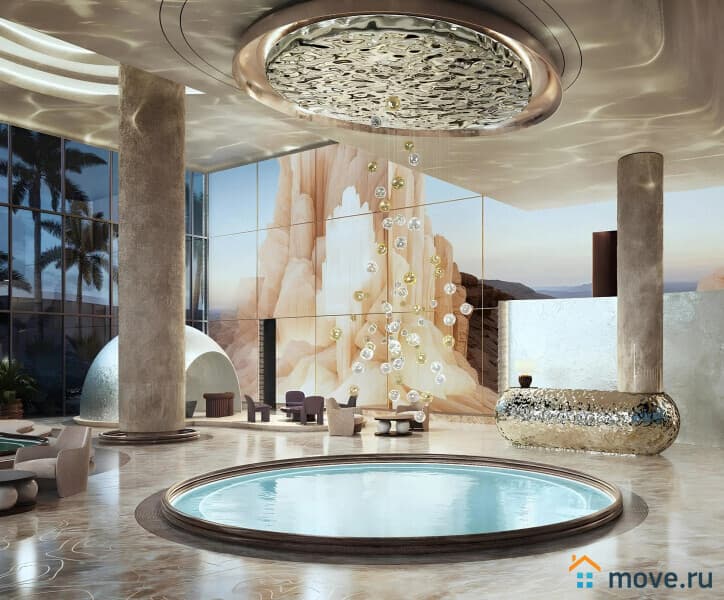 - спа-зоны и массажные кабинеты, - сауна, бассейны, зоны йоги и пилатеса, - фитнес-зал с панорамой на пляж, - детская игровая комната, - коворкинг и лаунж-бар, - частный кинотеатр.